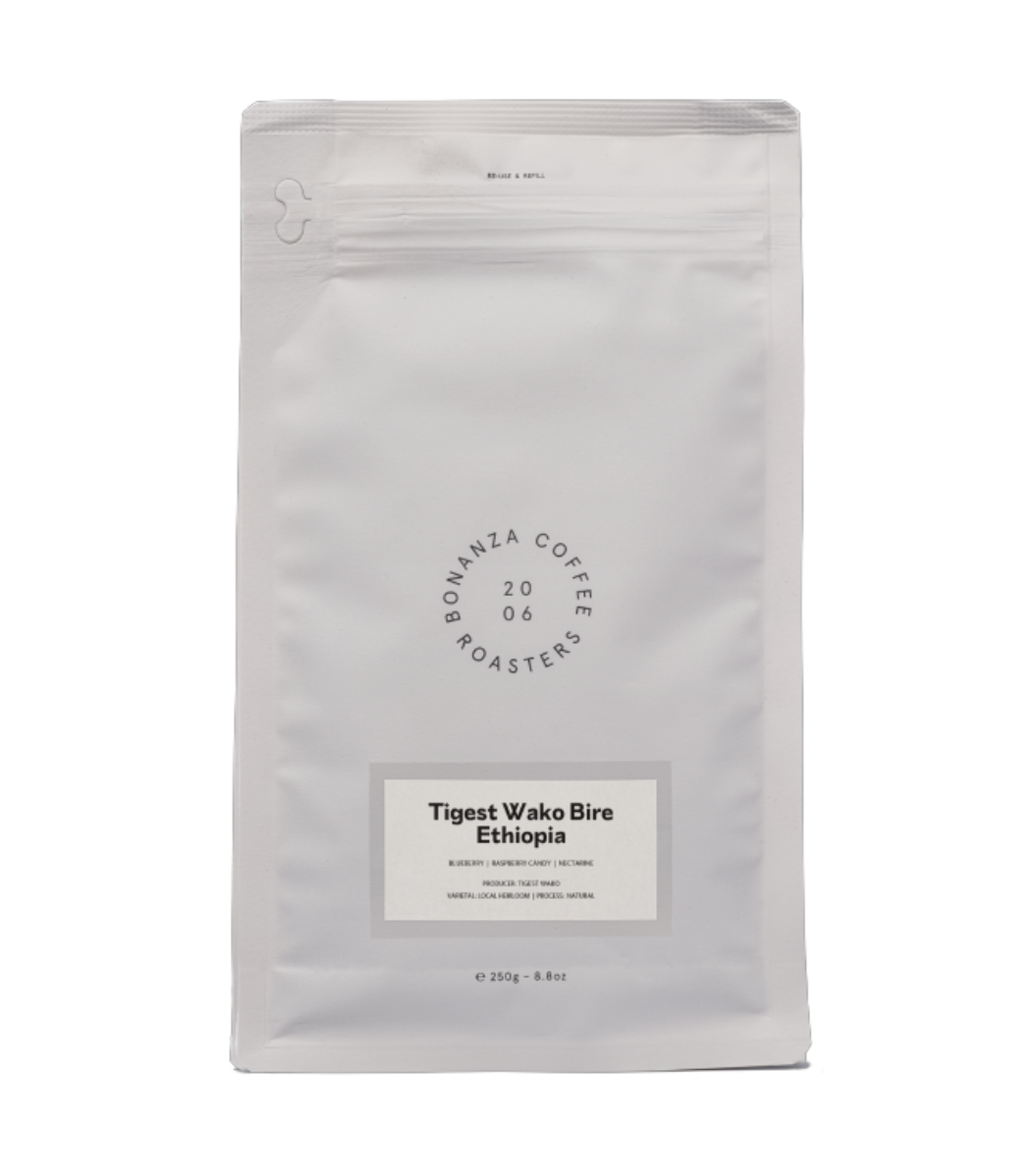 Tigest Wako Bire is an exceptional coffee from the Yirgacheffe region of Ethiopia with flavour notes of blueberry, raspberry candy and nectarine. This natural process highlights the authentic heritage of Ethiopia, delivering an unmistakably fruity and complex experience. Ideal for all preparation methods.