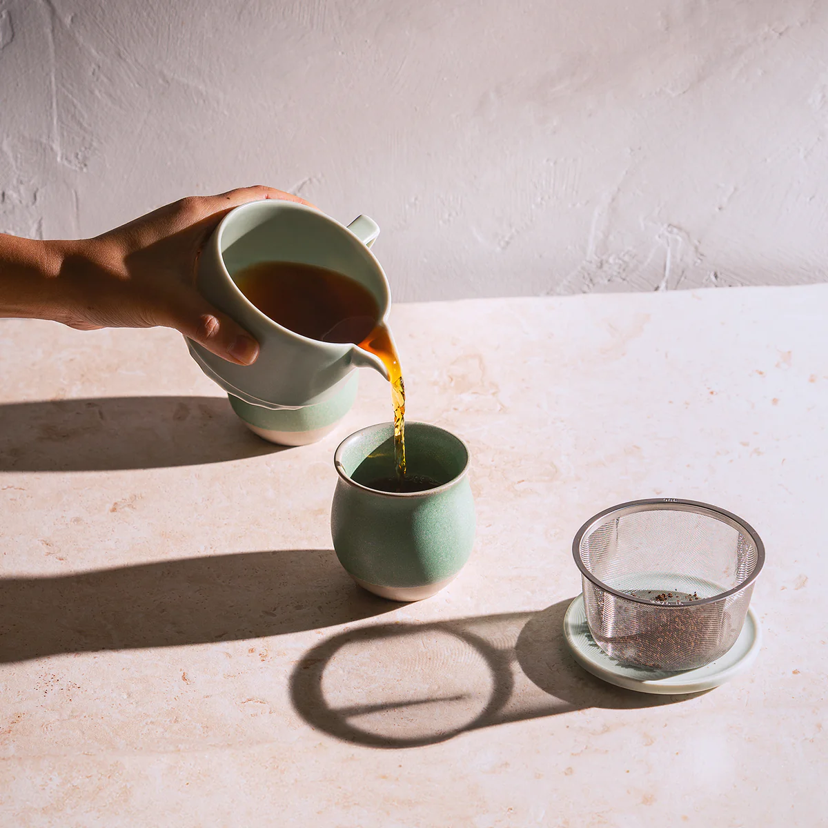 Vyrobený z vysokokvalitného porcelánu, Origami Kyusu zabezpečuje optimálnu extrakciu chutí a aróm z vášho obľúbeného čaju. Jeho integrovaný keramický filter jemne zachytáva čajové lístky, čím vám umožní vychutnať si dokonale čistý nálev. Čisté línie, minimalistický vzhľad a matný povrch robia z tohto čajníka nielen funkčný, ale aj estetický doplnok do vašej domácnosti.