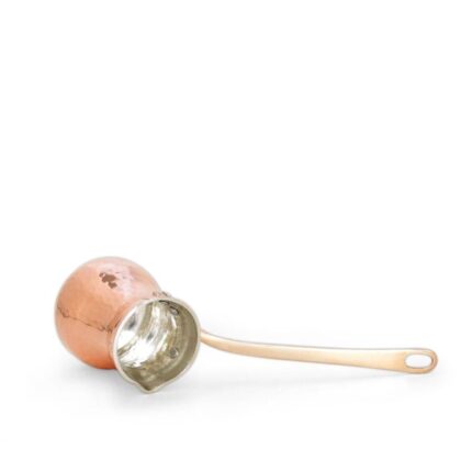 Po použití džezvu opláchnite a osušte; pri medi/cíne nepoužívajte agresívne abrazíva ani umývačku. Občas vyleštite povrch jemným prípravkom a skontrolujte neporušenosť cínu. Na odstránenie kávových olejov a pachov pomôžu šetrné čistiace prostriedky.
