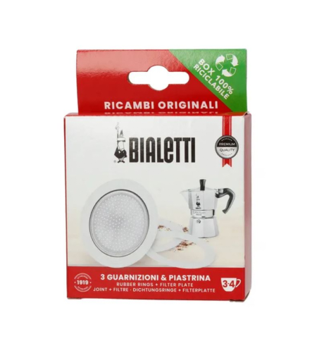 Originálna sada Bialetti obsahuje 3 silikónové tesnenia a kovový filter pre obnovu tesnosti a správnej funkcie moka kanvičky. Jednoduchá výmena, dlhá životnosť.