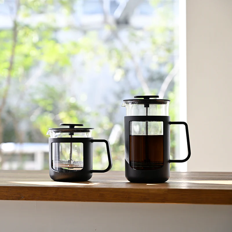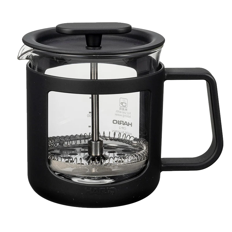 Telo kanvice je vyrobené z tepelne odolného skla, ktoré je tradične používané v produktoch Hario. Vďaka tomu je odolné voči vysokým teplotám a umožňuje sledovať proces prípravy kávy. Okraj a veko sú z kvalitného plastu s moderným matným povrchom, čo dodáva french pressu elegantný vzhľad. Ergonomická rukoväť zabezpečuje pohodlné a bezpečné používanie.