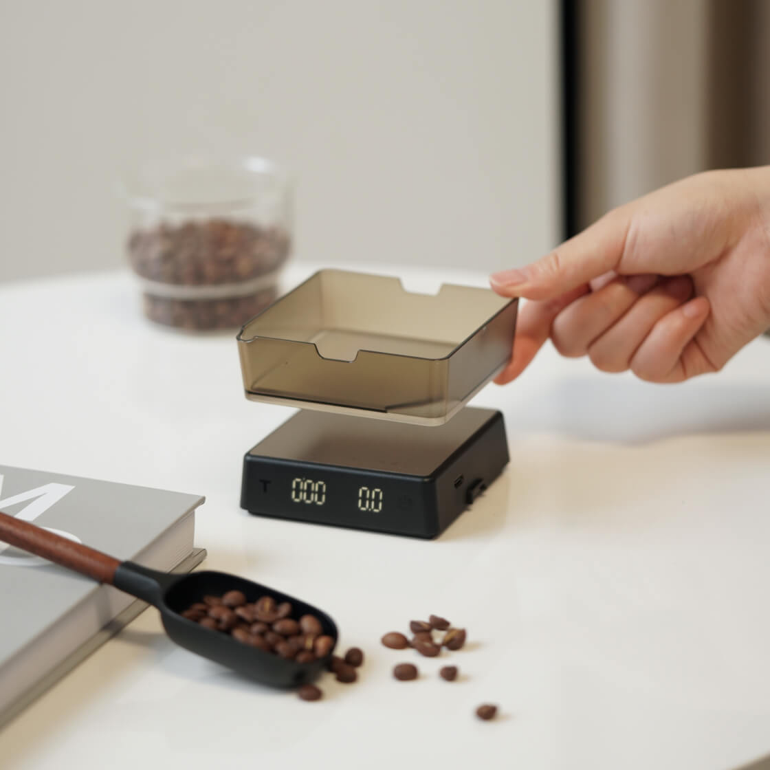 Numai cu dimensiuni 80 × 80 mm și profil redus, Nuttii Geo-C Pro se potrivește sub aproape fiecare aparat de cafea. Este alegerea ideală pentru spațiile barista mai mici, bucătăriile de acasă și călătoriile. Designul minimalist asigură faptul că cântarul arată discret, dar funcțional.